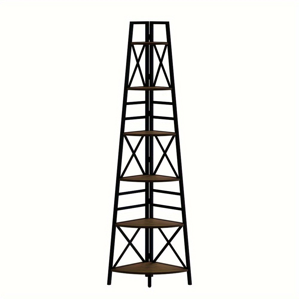 6-Tier Rustic Brown Corner Bookshelf with Metal Frame